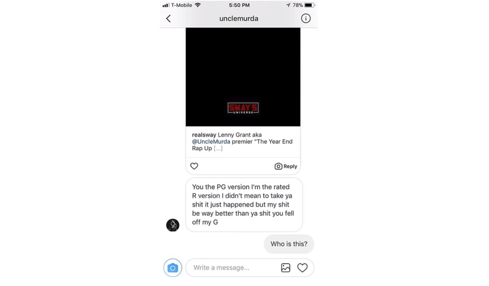 You a comedian/ We don’t come to you for bars/ We straight/ On top of that you fake/ You signed to G Unit 10 years too late!
