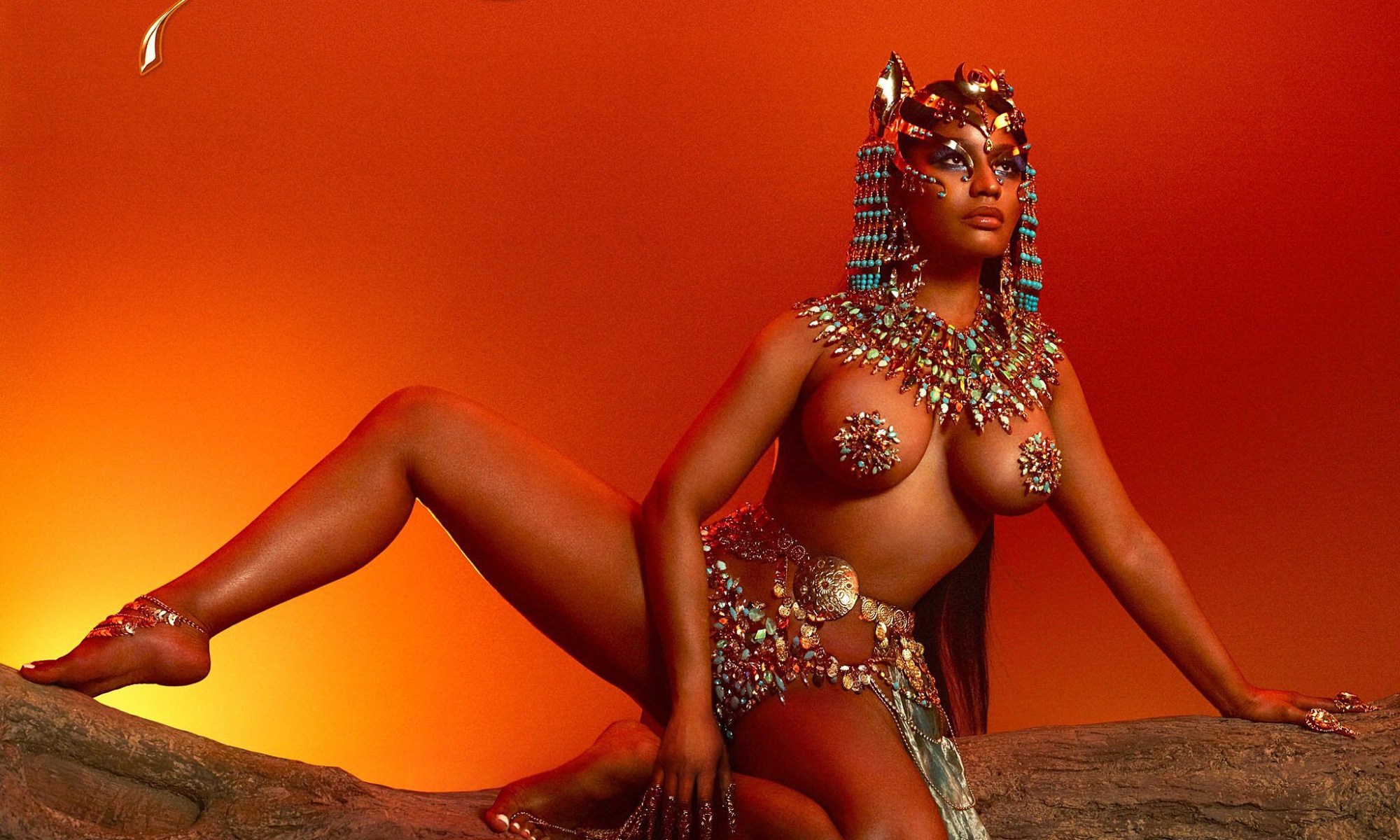 After two high-profile singles in “Barbie Tingz” and “Chun Li,” Nicki Minaj has unveiled the cover art for her fourth album Queen (August 10). Clad in barely there ancient Egyptian-style beads, Minaj’s legendary curves are on full display as she’s perched and surveying the horizon (of her kingdom, I presume).