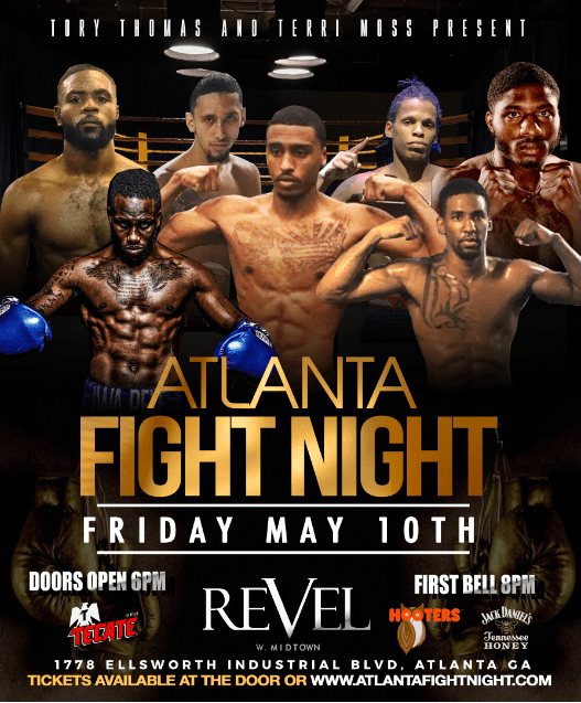 Atlanta Fight Night takes place at Revel (1778 Ellsworth Industrial Blvd., Atlanta). Doors open at 6 p.m. with first bell at 8 p.m. Tickets are available at http://www.atlantafightnight.com, http://www.eventbrite.com and the door.