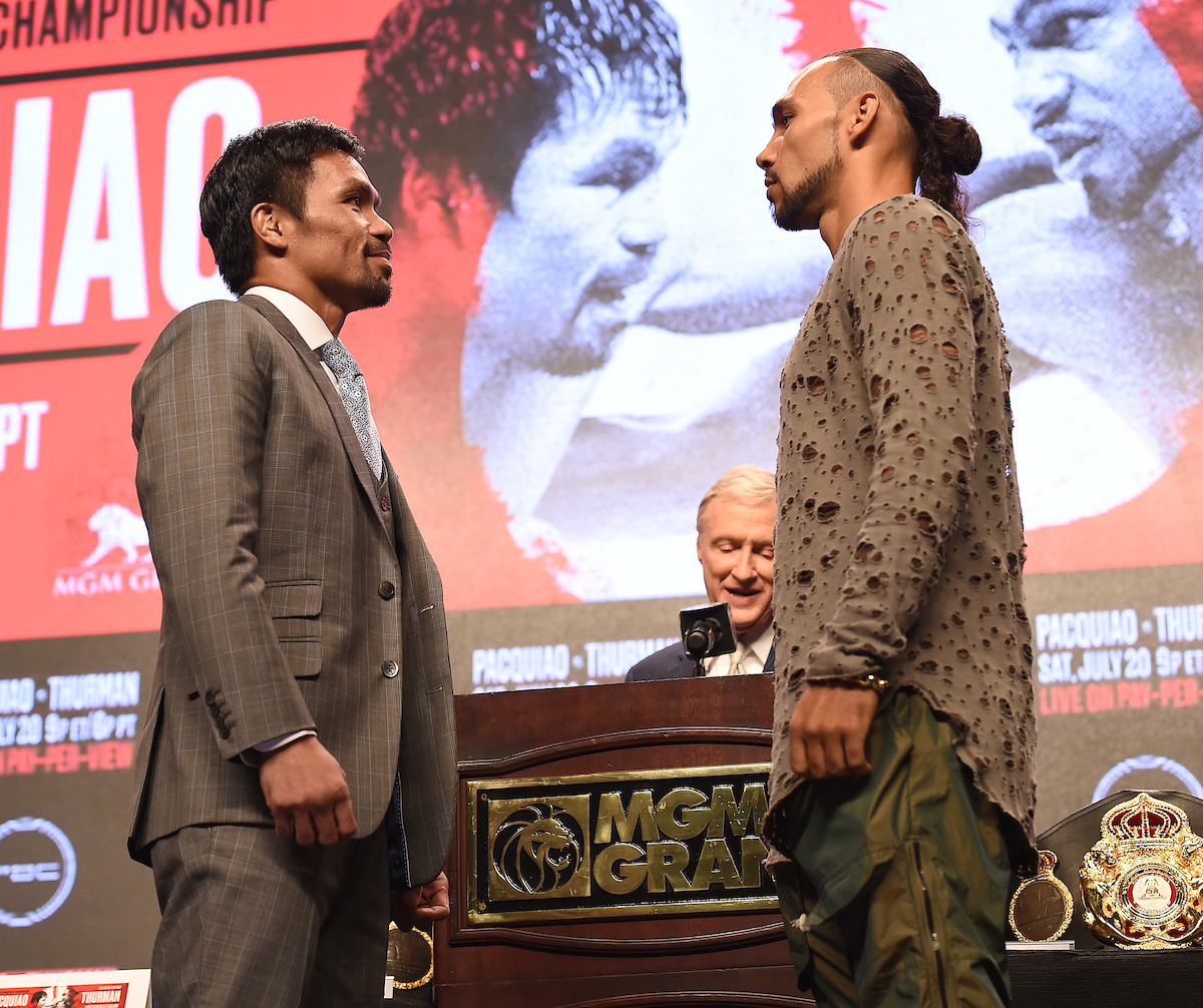 Stream the weigh-in for the biggest welterweight showdown of the year when WBA title-holder Manny Pacquiao takes on undefeated Keith Thurman. The weigh-in stream lives this afternoon at 4 p.m. ET and includes the co-main event of Caleb Plant vs. Mike Lee and other undercard fights. Also, be sure to check back later tonight on BeatsBoxingMayhem for our official prediction.