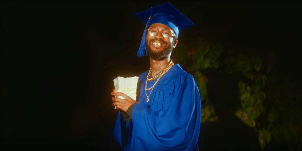 Dreamville’s Lute is turning his “pain into wealth” in these striking visuals for “GED (Gettin Every Dolla).” From the role reversal of power dynamics with the opening black lawn jockey visual to Lute handicapping a plantation owner in a game of chess, the Charlotte rapper has truly made the “struggle quench his thirst.”