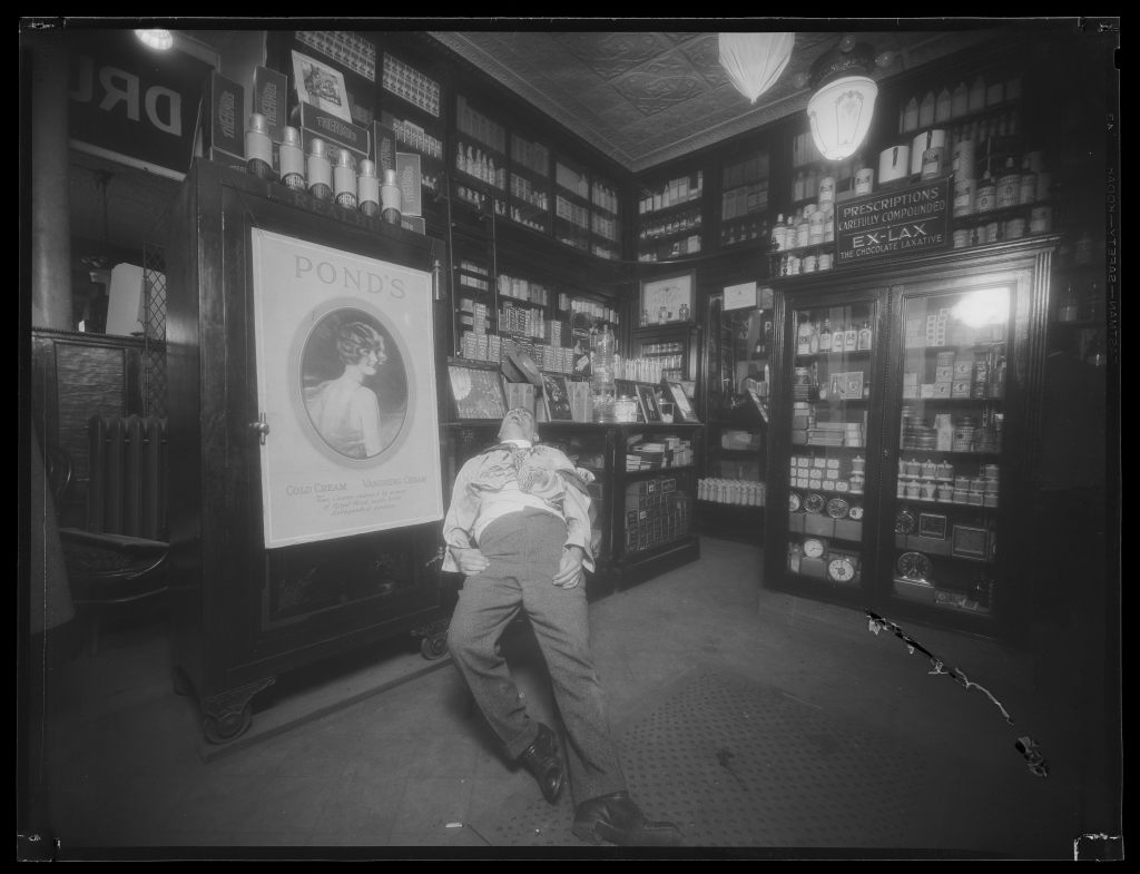 Wow, thank you for uploading these pictures. The shot of D’Aquila in the pharmacy is especially fascinating because you can see what type of products were sold in stores back then!