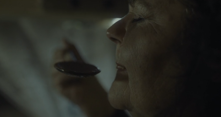 The title tells you everything you need to know. We come upon a trailer and witness a woman gorging herself on meat stew while an invalid man looks on in terror. The finale gives a good payoff regarding the meal but you could’ve gotten there in half the time.