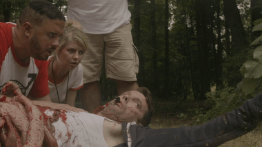 Alright, we have a winner for the funniest film of Day 1. The Lake Parasite might resemble the Rubber Man from American Horror Story, but the former is a lot goofier and has a strange habit of making Toxic Avenger-like noises when ripping out body parts or killing beach goers with frisbees. The over the top the presentation is a nice nod to the classic monster cinema days with a sprinkle of 80s wretched excess. This is even more impressive when find out it was accomplished on a two-man crew!