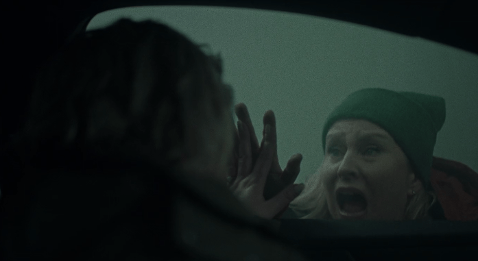 A “dangerous” fog is causing people to go insane and has forced a woman named Hannele to remain trapped in her car. The isolation forces her to rely on the radio and cell phone for news updates, making this a slick callback to the brief hysteria that resulted from the famous War of the Worlds radio broadcast.