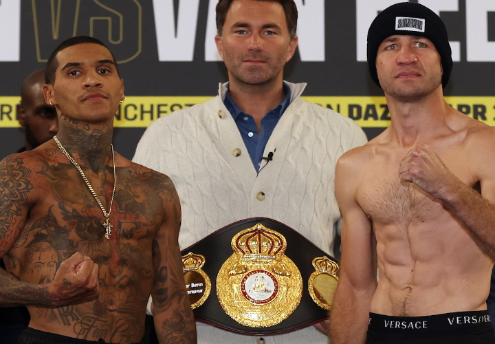 Conor Benn and Chris Van Heerden made weight without issue for their welterweight showdown this Saturday on DAZN live from Manchester Arena.