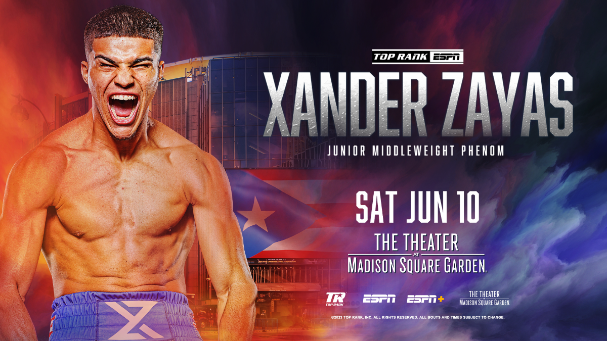 Junior middleweight prospect Xander Zayas will make his 2023 debut on the eve of the Puerto Rican Day Parade against Ronald Cruz June 10 in New York City.