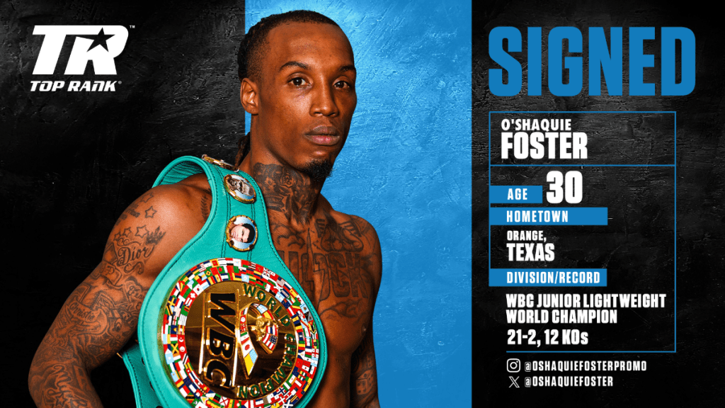 WBC junior lightweight champion O’Shaquie Foster makes his Top Rank debut this Friday (February 16) against Abraham Nova at Madison Square Garden’s Hulu Theater. Coming off a Round of the Year (11th) and sensational late stoppage of Eduardo Hernandez in hostile territory last October, Foster is primed in 2024 to solidify his credentials as one of boxing’s best and most active champions.